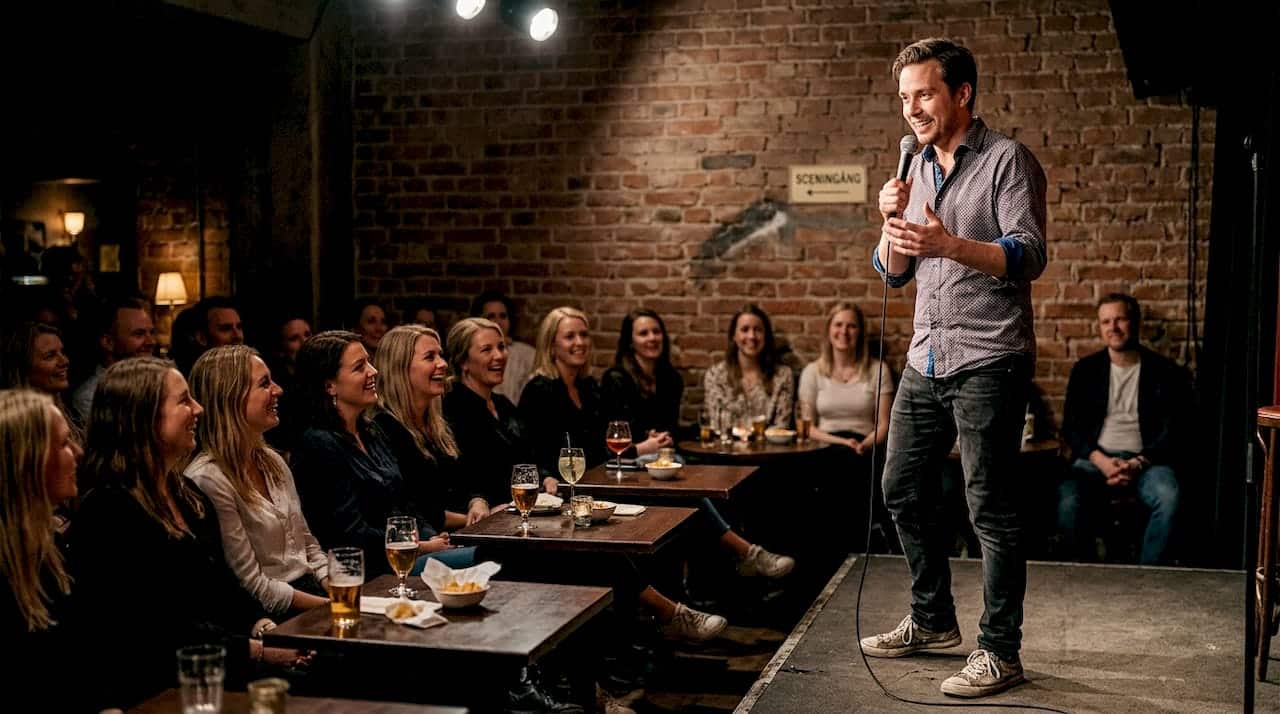 Utforska våra standup-format som utvecklar din scenkonst för att hitta nya sätt att strukturera dina framträdanden. Om du står i början av din komediresa ger vår bli stå upp-komiker guide dig en konkret färdplan från första öppna micen till betalda gigs. För att fördjupa din förståelse för humorns mekanismer och hur du skapar skämt som verkligen landar, utforska våra artiklar om komeditekniker och humor där vi bryter ner vad som faktiskt får folk att skratta och varför.